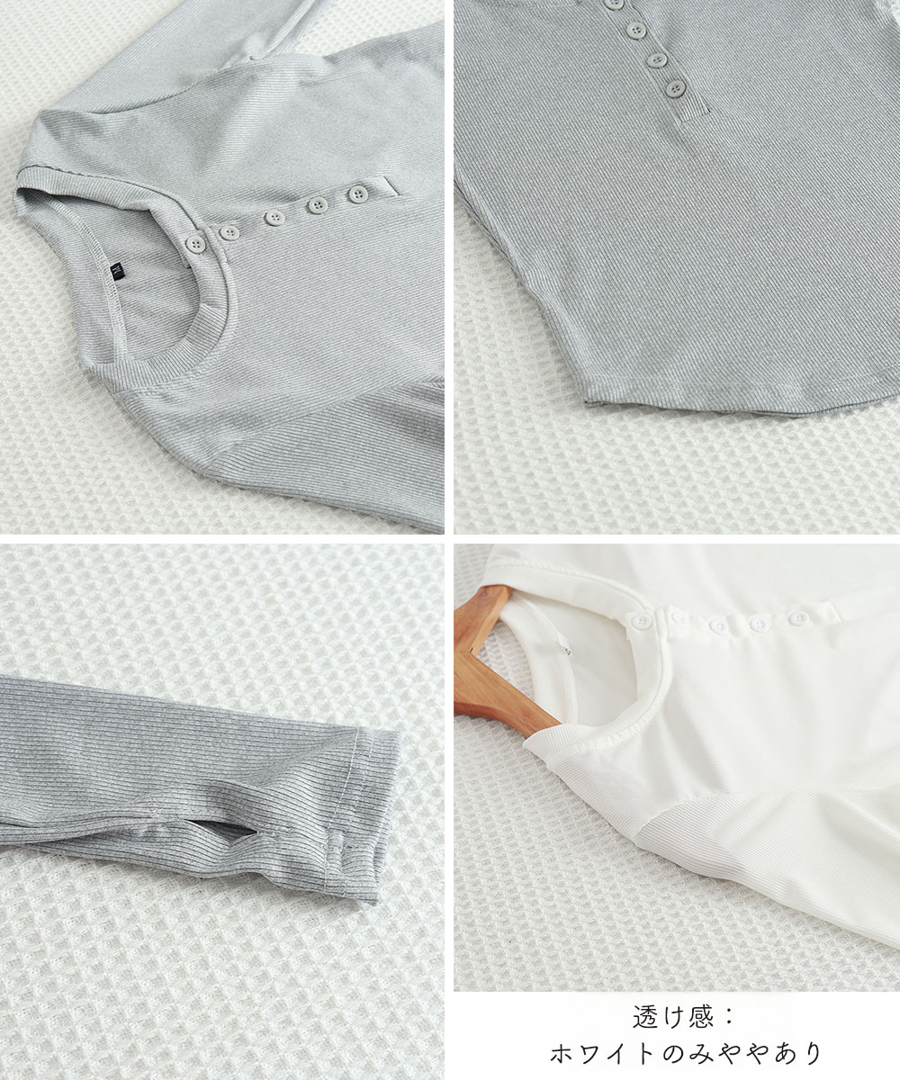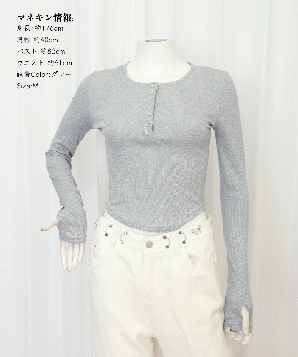 細身Tシャツ セクシー 細見え オルチャン 着やせ 大人 シンプル おしゃれ フィットフェミニン 着回し 春秋トップス クルーネック秋服 韓国ファッション スリムなシルエットで女性らしいラインをきれいに魅せる長袖トップス。 深めのボタンデザインでデコルテを美しく演出。外して抜け感のある着こなしも◎。 シンプルながらトレンド感があり、デニムやスラックスと合わせてカジュアルにもきれいめにも着回せる一枚。 素材:ポリエステル85%+綿15% カラー:ホワイト/ブラック/グレー サイズ:M/L/XL [M]着丈:約45cm 肩幅:約32cm 袖丈:約64cm ゆき:約80cm 身幅:約35cm 胸囲:約70-82cm [L]着丈:約46cm 肩幅:約33cm 袖丈:約65cm ゆき:約81.5cm 身幅:約37cm 胸囲:約74-86cm [XL]着丈:約47cm 肩幅:約34cm 袖丈:約66cm ゆき:約83cm 身幅:約39cm 胸囲:約78-90cm 裏地:なし 伸縮性:あり 透け感:ホワイトのみややあり