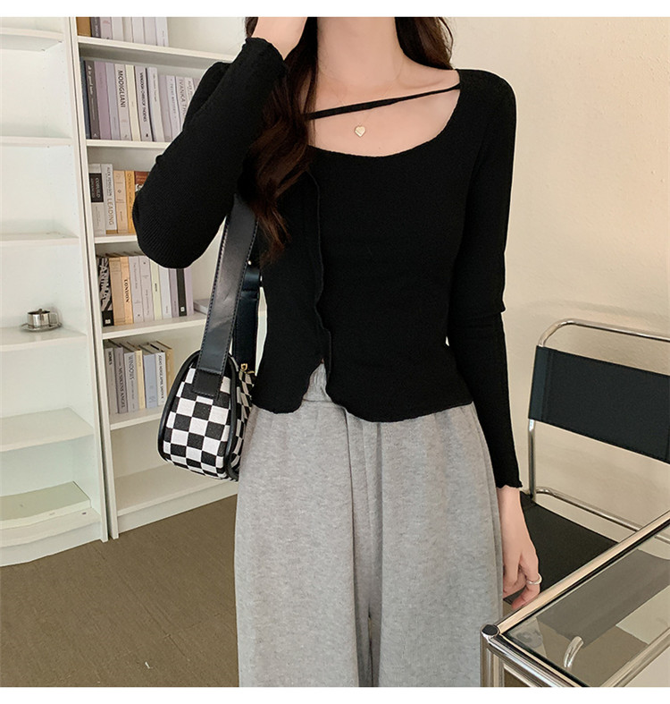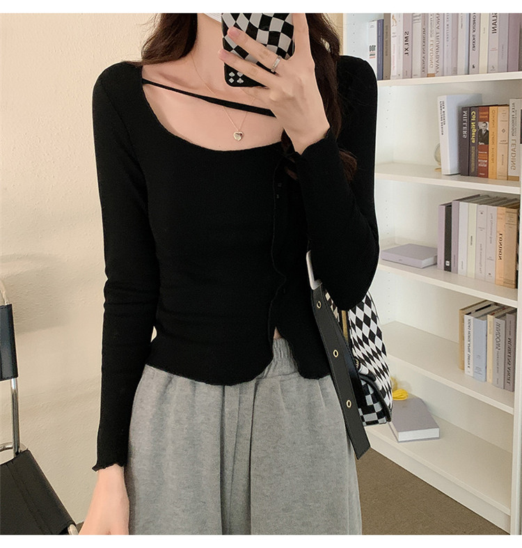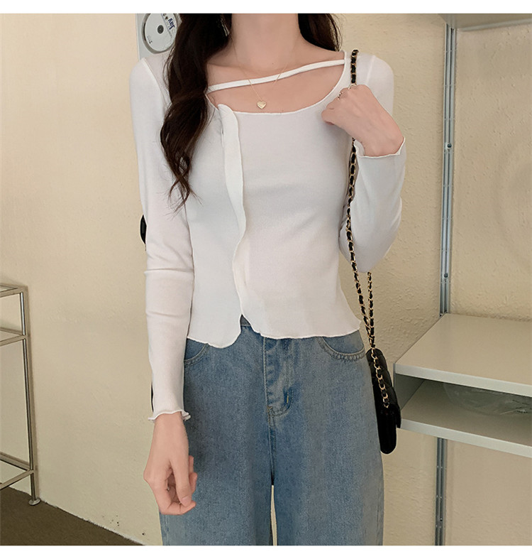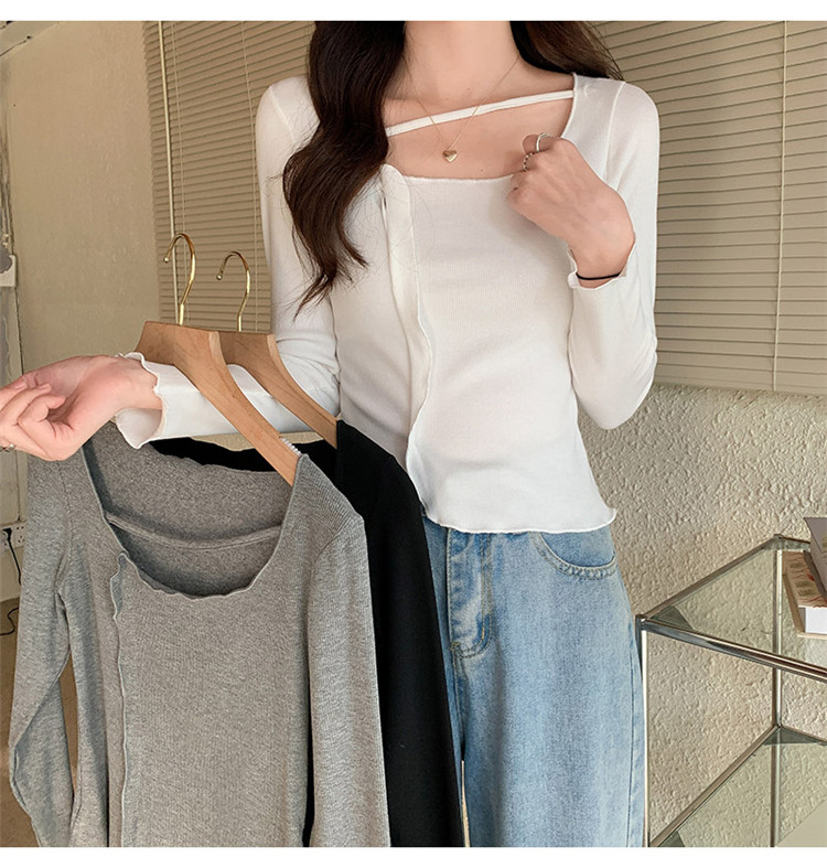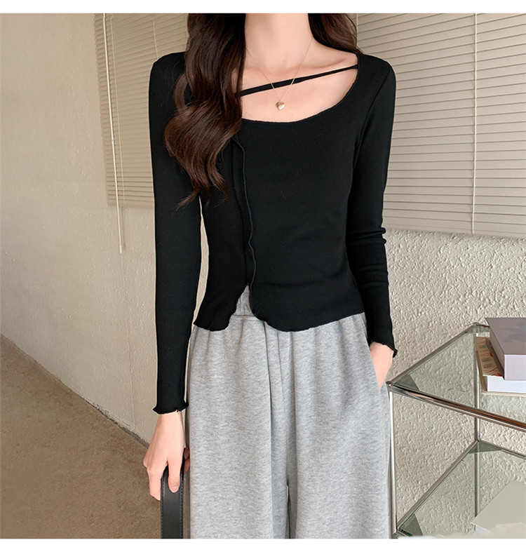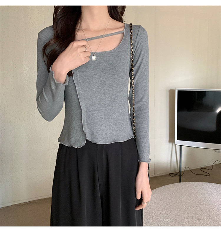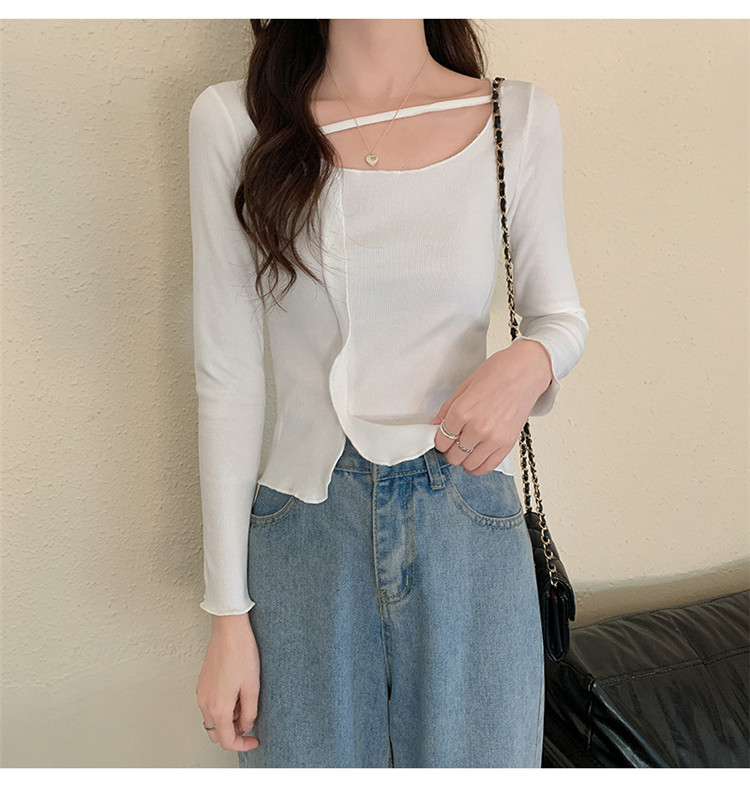 胸元のユニークなカットデザインがアクセントになり、カジュアルからきれいめまで幅広く活躍します。