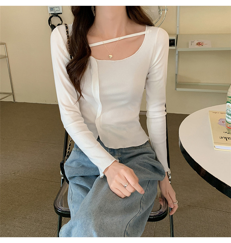 デザイン性の高いスリムシルエットの白ティーシャツです。