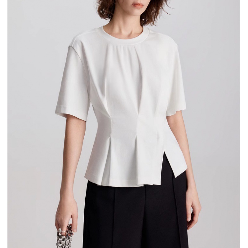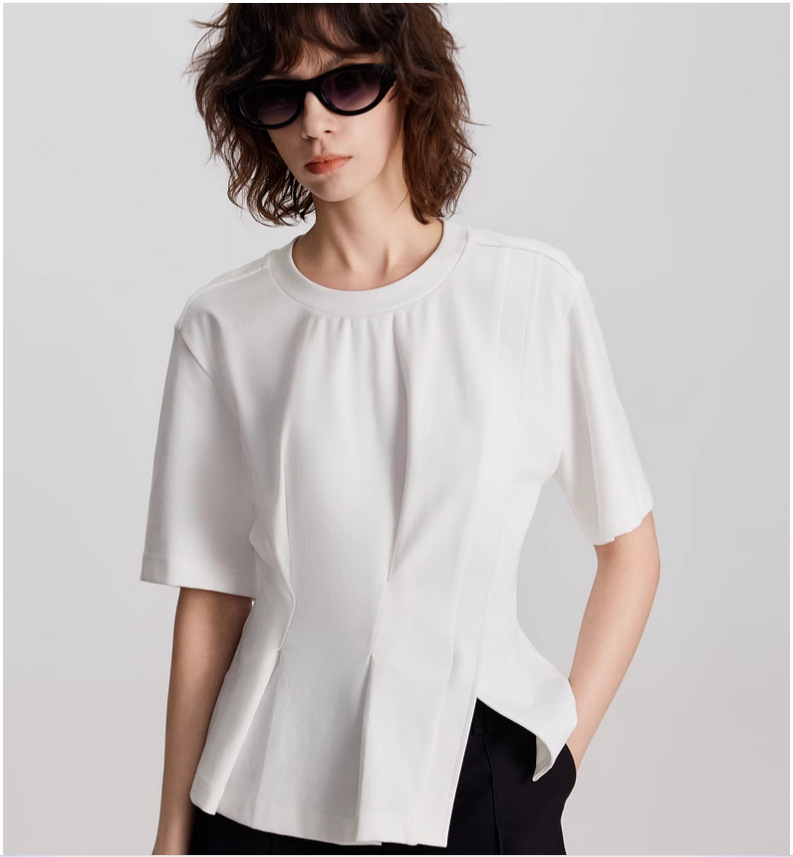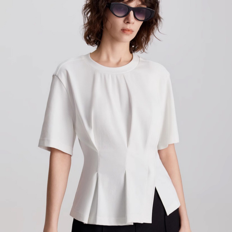 胸元のプリーツデザインがエレガントな印象を演出します。
